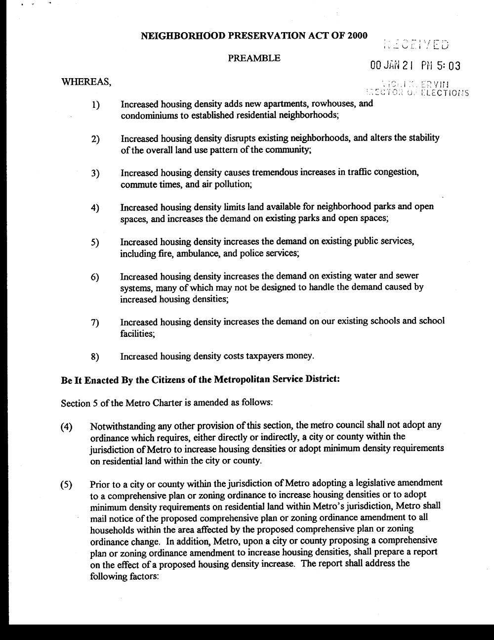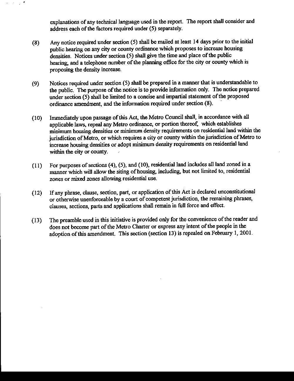 (13) The preamble used in this initiative is provided only for the convenience of the reader and does not become part of the Metro Charter or express any intent of the people in the adoption of this amendment. This section (section 13) is repealed on February 1, 2001.